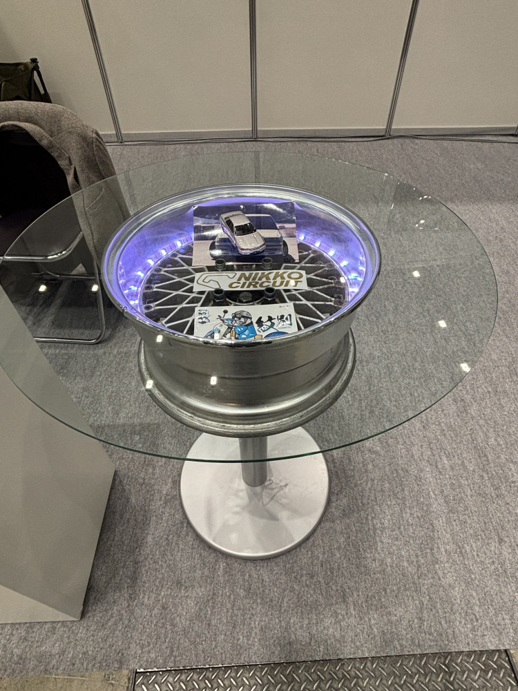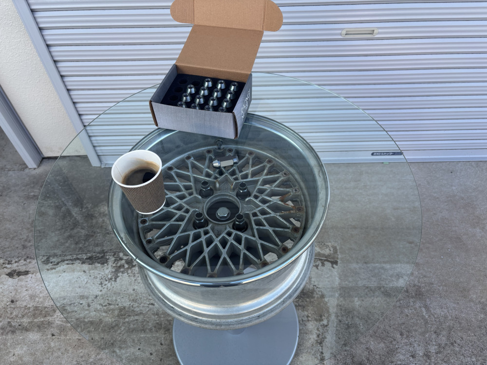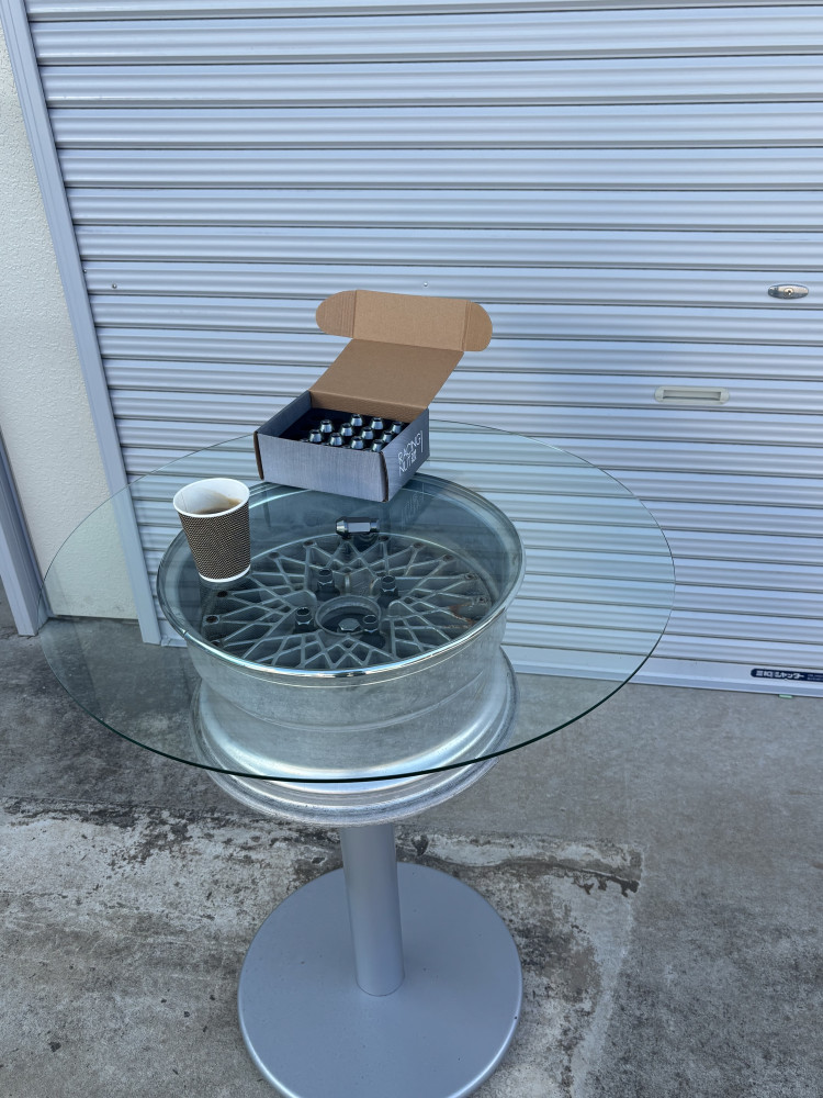 そこで車が好きな方なら興味を持っていただけそうな、アルミホイールを活用したテーブルキットとなります。